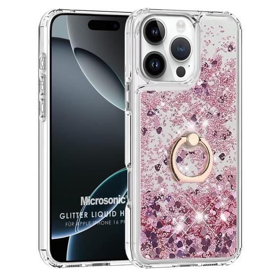 Microsonic Apple iPhone 16 Pro Kılıf Glitter Liquid Holder Pembe