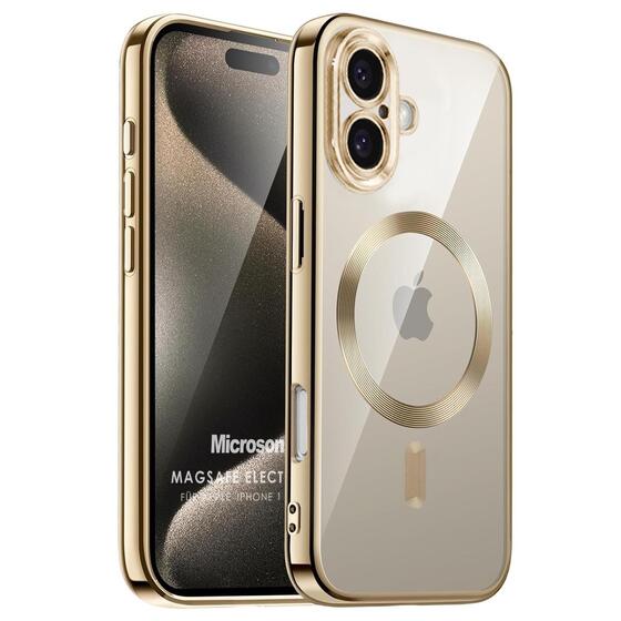Microsonic Apple iPhone 17 Kılıf MagSafe Luxury Electroplate Gold