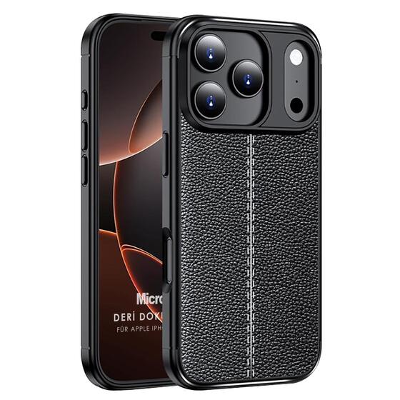 Microsonic Apple iPhone 17 Pro Max Kılıf Deri Dokulu Silikon Siyah