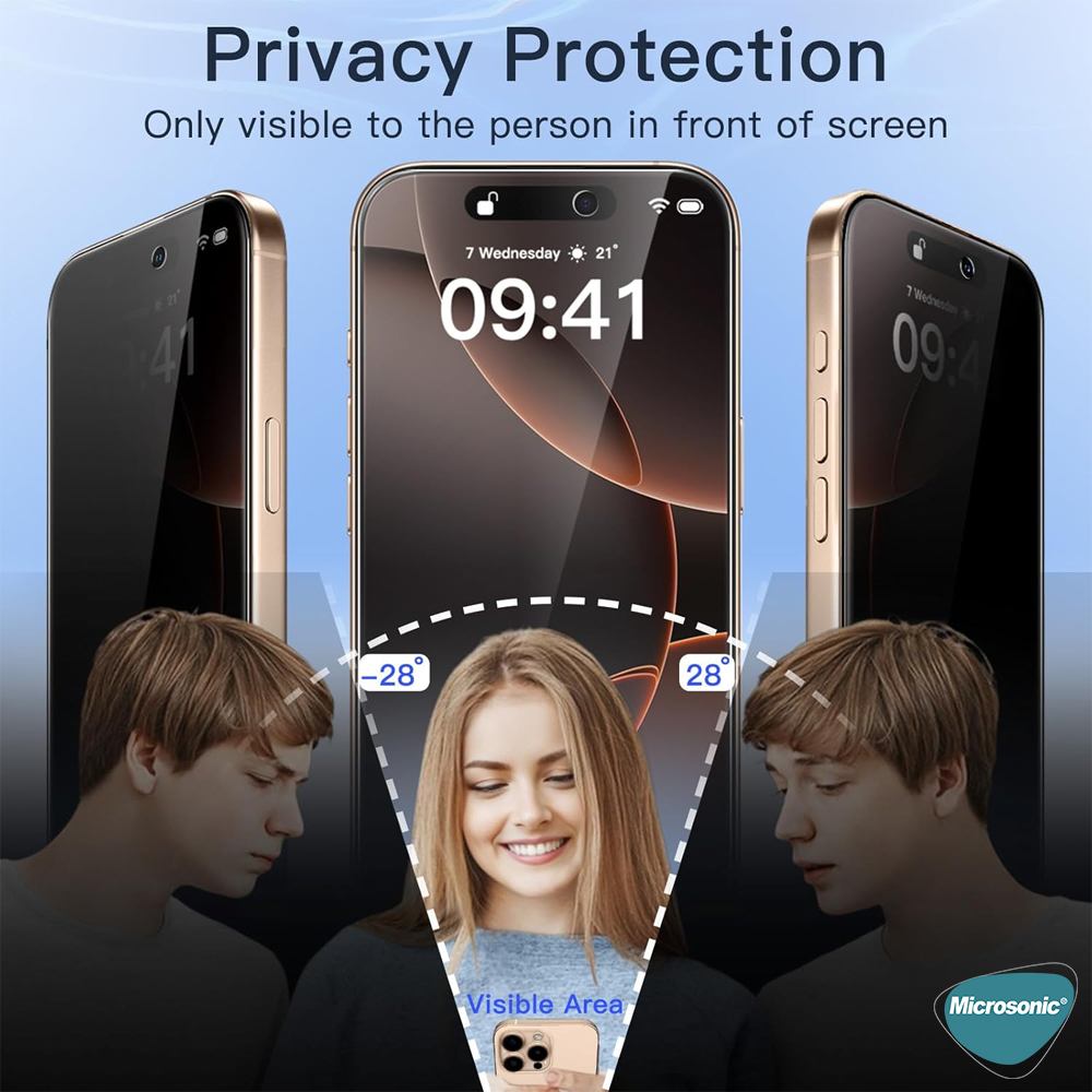 ✅ Microsonic Privacy Ekran Koruyucusunu kullandığınızda cihaza karşıdan bakan hariç, diğer kişiler telefonunuzun ekranını göremeyecektir.