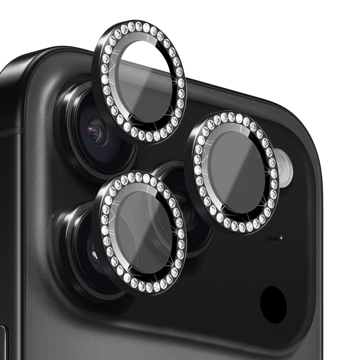 Microsonic Apple iPhone 17 Pro Max Tekli Diamond Taşlı Kamera Koruma Camı Siyah