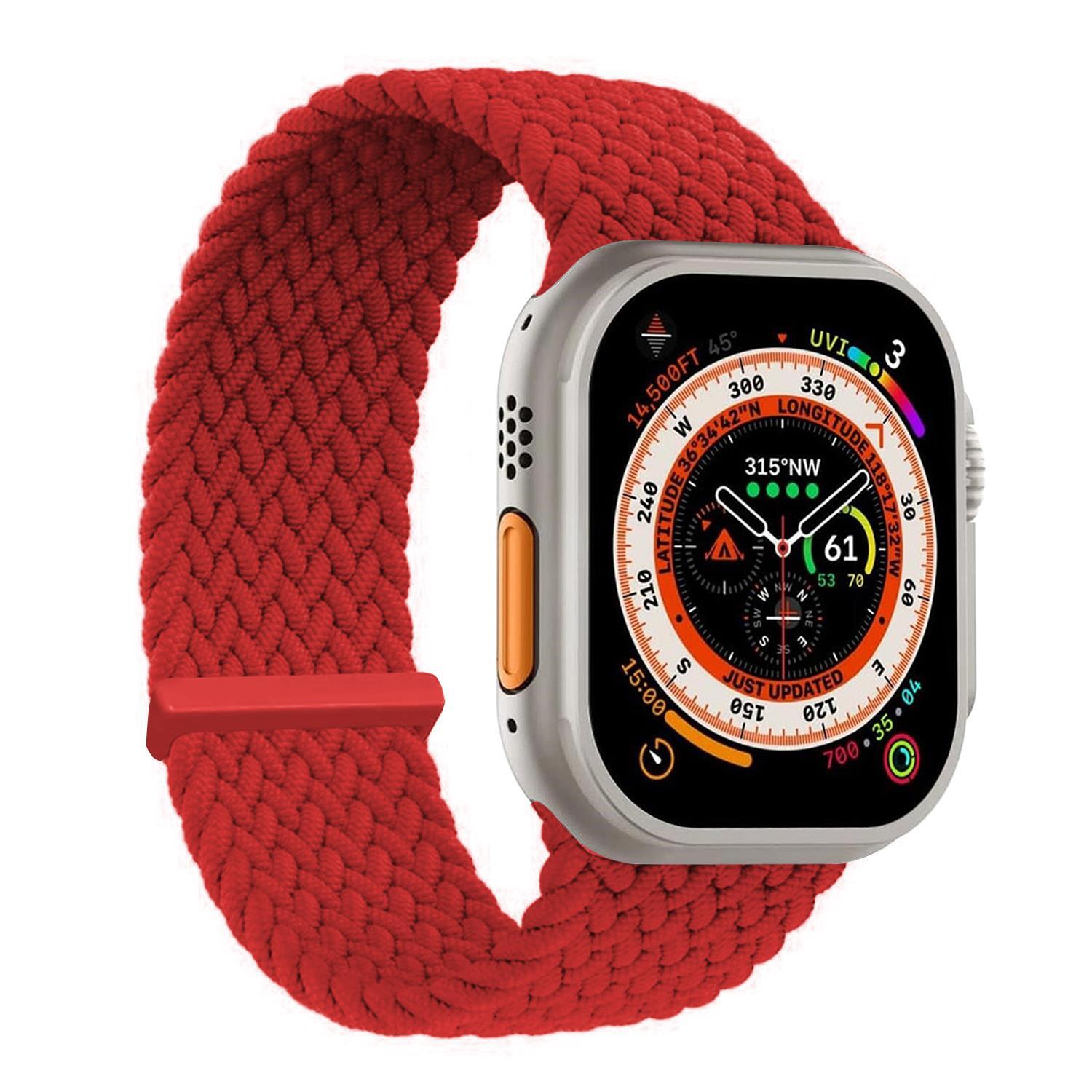 Microsonic Apple Watch Ultra 3 Kordon, (Small Size, 127mm) Knitted Fabric Single Loop Kırmızı