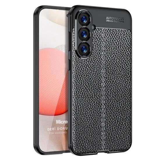 Microsonic Samsung Galaxy A17 Kılıf Deri Dokulu Silikon Siyah