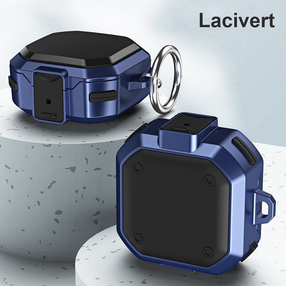 Microsonic Samsung Galaxy Buds Core Kılıf Darbeye Dayanıklı Sert Koruyucu + Askılık Lacivert
