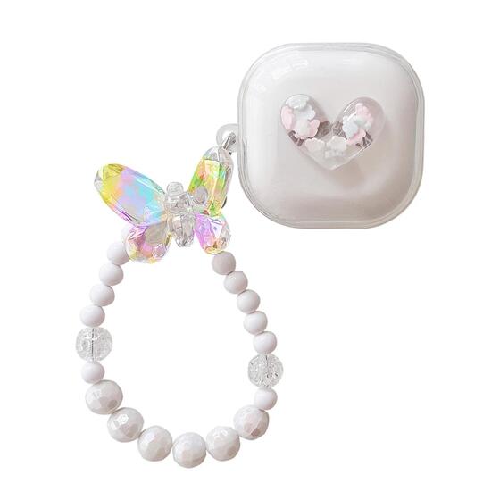Microsonic Samsung Galaxy Buds Core Kılıf Kalp ve Kelebek Figürlü Parıltılı Şeffaf