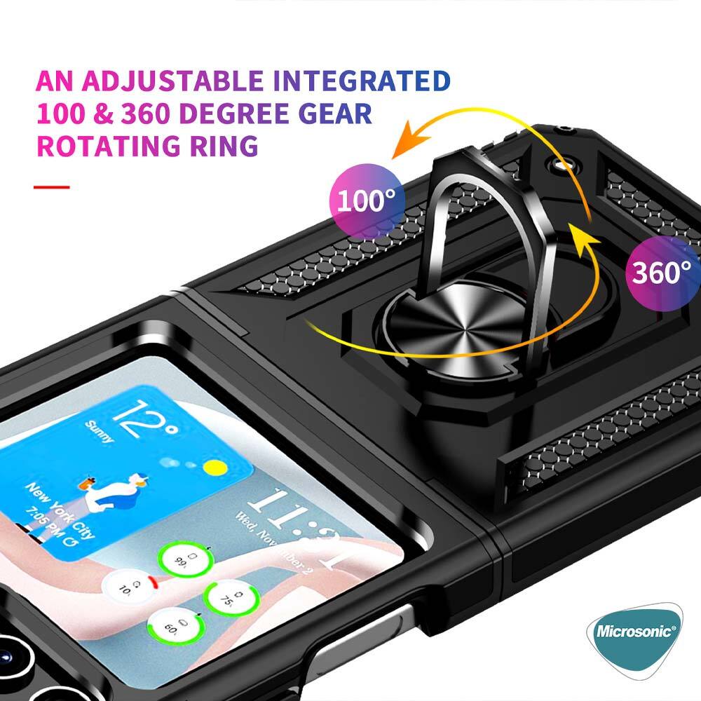 Microsonic Samsung Galaxy Z Flip 7 FE Kılıf Military Ring Holder Siyah